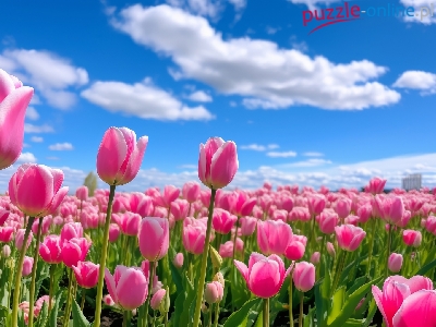 Tulipany, Kwiaty, Różowe, Grafika, Niebo