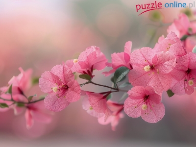 Puzzle Różowe, Gałązka, Rozwinięte, Kwiaty