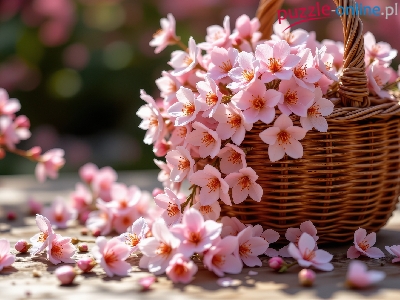 Drobne, Kwiaty, Różowe, Koszyk, Wiklinowy