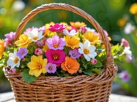 Kolorowe, Kwiaty, Rozwinięte, Koszyk, Wiklinowy