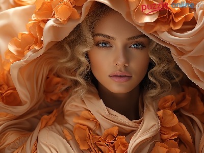 Puzzle Spojrzenie, Kobieta, Blondynka, Kwiaty