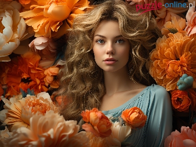 Puzzle Spojrzenie, Blondynka, Kobieta, Kwiaty