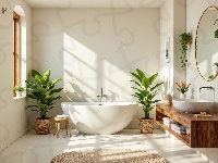 Taboret, Dywan, Szafki, Wanna, Umywalka, Lustro, Łazienka, Kwiaty