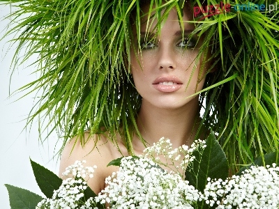 Puzzle Kwiaty, Dziewczyna, Trawa, Wiosna
