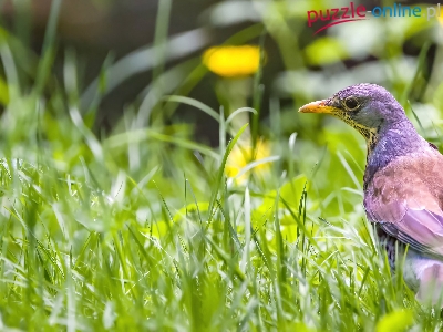 Puzzle Trawa, Ptak, Kwiczoł, Kwiaty