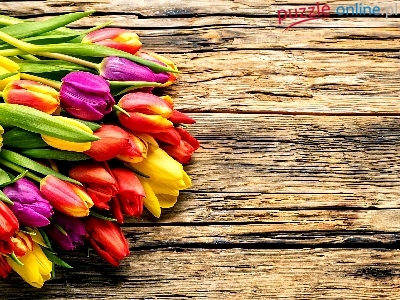 Puzzle Tulipany, Kwiaty, Deski
