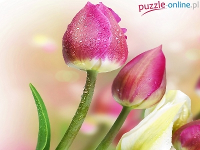 Puzzle Tulipany, Kwiaty, Krople