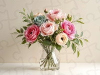 Kwiaty, Kolorowe, Wazon