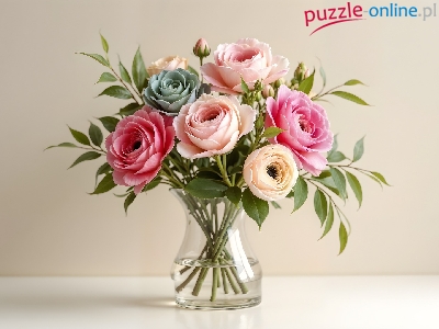 Puzzle Kwiaty, Kolorowe, Wazon
