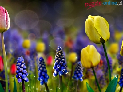 Kwiaty, Szafirki, Makro, Wiosenne, Tulipany