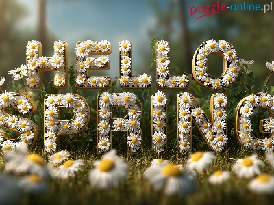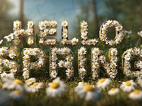 Stokrotki, Napis, Wiosna, Hello Spring, Grafika AI, Kwiaty