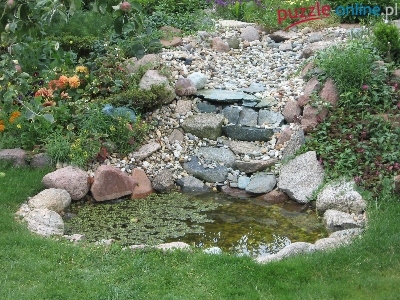 Kwiaty, Oczko, Trawa, Ogród, Wodne, Kamienie