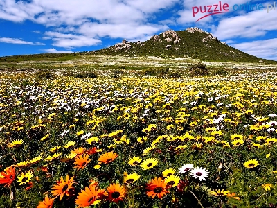 Puzzle Łąka, Wzgórze, Kwiaty, Wiosna