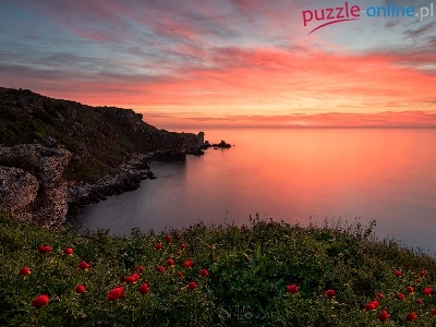 Puzzle Kwiaty, Wybrzeże, Zachód słońca
