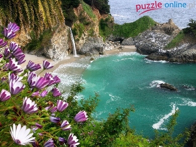Puzzle Kwiaty, Morze, Zatoka, Skały