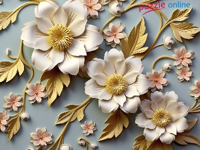 Liście, Różowe, Białe, Kwiaty, Grafika, Złote
