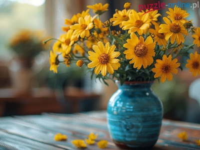 Bukiet, Kwiaty, Żółte, Wazon, Niebieski