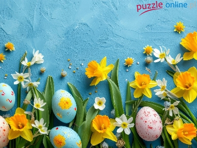Niebieskie, Pisanki, Wielkanoc, Kwiaty, Tło, Żonkile