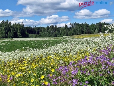 Puzzle Łąka, Las, Kwietna, Obłoki