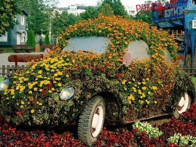 Kwietnik, Kompozycja, Ogród, Samochód, Kwiaty