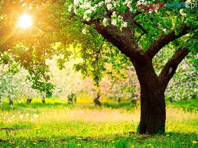 Kwitnące, Przebijające Światło, Wiosna, Łąka, Drzewa