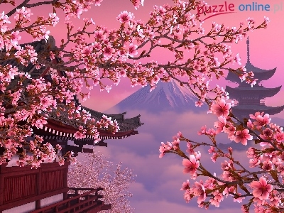 Puzzle Drzewa, Kwitnące, Domek