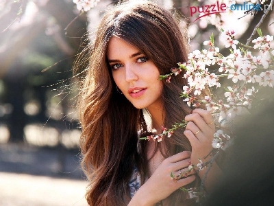 Puzzle Kwitnące, Piękna, Kobieta, Drzewo