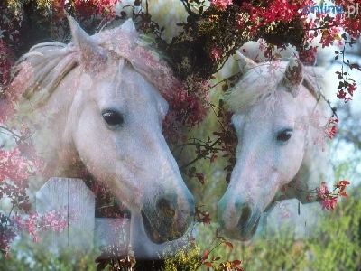 Puzzle Kwitnące, Dwa, Konie, Drzewa