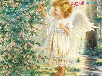 Puzzle Kwitnący, Dziewczynka, Aniołek, Krzew