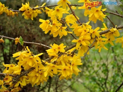 Kwitnący, Forsycja, Żółte, Kwiaty, Krzew