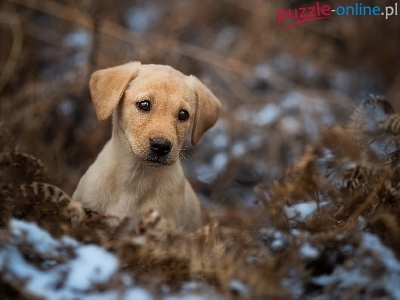 Liście, Labrador retriever, Śnieg, Szczeniak, Suche, Paproć