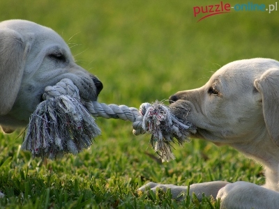 Puzzle Labradorki, Dwa, Młode, Zabawa