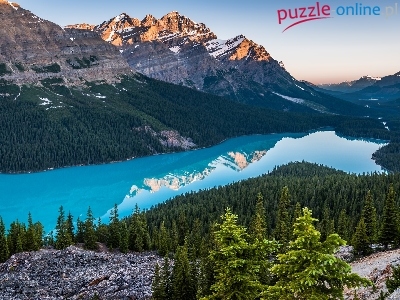 Jezioro Peyto Lake, Lasy, Kanada, Park Narodowy Banff, Góry Canadian Rockies