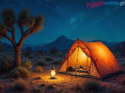Lampa naftowa, Góry, Namiot, Grafika AI, Gwiazdy, Noc, Drzewo