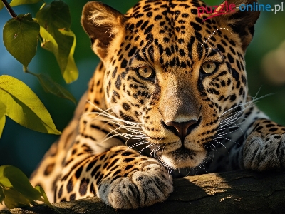 Puzzle Liście, Lampart, Głowa, Grafika AI