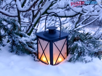 Puzzle Lampion, Ośnieżone, Gałązki, Dekoracja