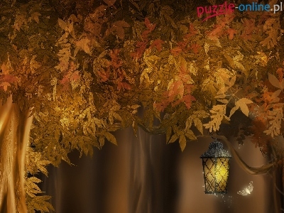 Puzzle Lampion, Drzewa, Liście, Art