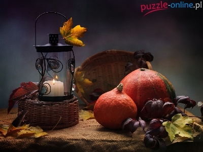 Świeczka, Liście, Kompozycja, Lampion, Dynie