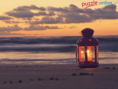 Puzzle Lampion, Morze, Plaża, Chmury