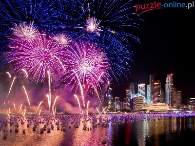 Puzzle Lampiony, Rzeka, Fajerwerki, Sylwester