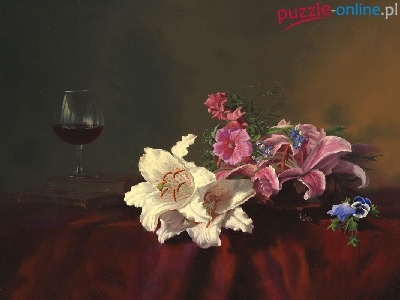 Puzzle Lampka, Bukiet, Kwiatów, Wina