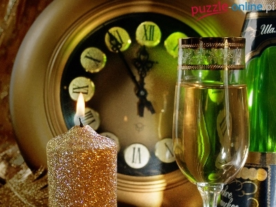Lampka, Kieliszek, Zegar, Åšwieca, Szampana