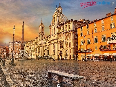 Plac Navona, Ławka, Agonalis, Świątynia, Obelisk, Włochy, Domy, Lampy