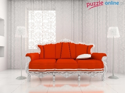 Sofa, Poduszka, Pokój, Czerwona, Lampy