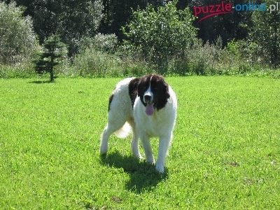 Landseer, Szczeniak mordka, Landseera leżący, Landseer Landseery, dwa, ogrodzenie pysk, Landseera Landseer, mewy biegnący, Landseer Piesek, Łąka Landseer, woda Landseer, Pies, Rzeka zielona, Landseer, trawa Landseer, fale biało-czarny, Landseer duży, Landseer