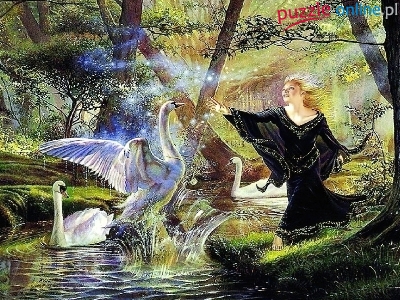 Puzzle Las, Kobieta, Łabędzie, Rzeka