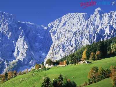 Puzzle Las, Góry, Łąka, Domy