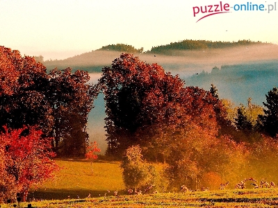 Puzzle Łąka, Las, Mgła