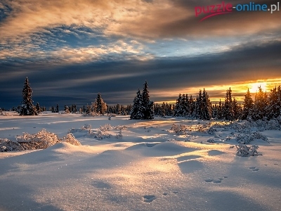 Puzzle Las, Zima, Chmury, Świerki