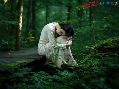 Las, Dziewczyna, Krzewy, Smutna, Ścieżka, Drzewa